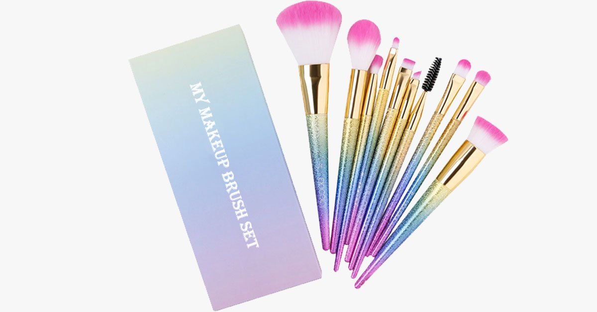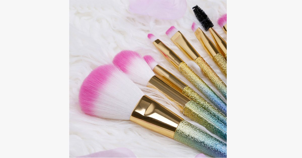 Hjemix | Sett med 10 glitrende sminkebørster - Klar til å gi deg hvilket som helst utseende du ønsker!