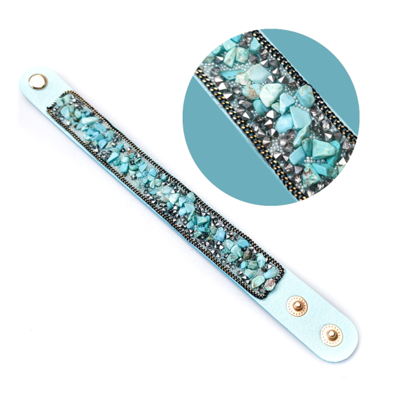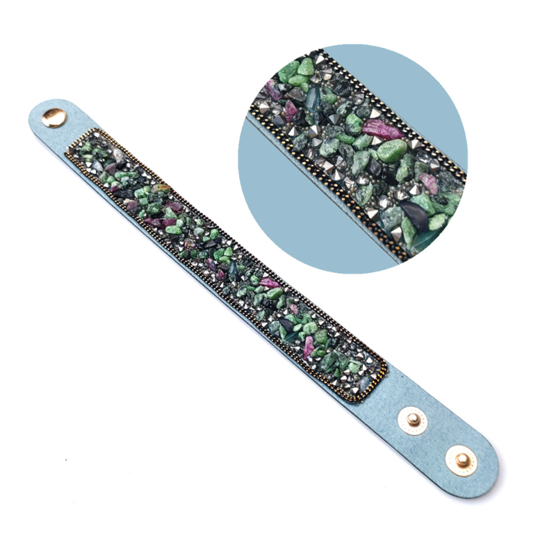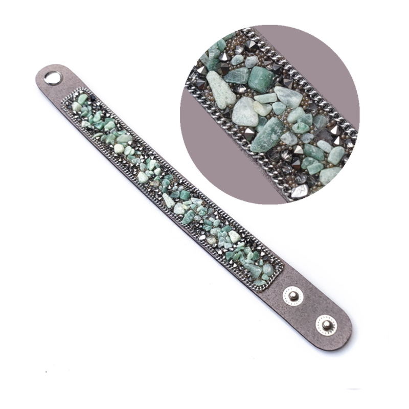 Dette armbåndet presenterer en fascinerende kombinasjon av Imperial Jasper, Turquoise, Hematite og ulike varianter av Agate, tilgjengelig i runde, tubulære og firkantede former. Dersom du har en forkjærlighet for iøynefallende smykker, vil dette armbåndet definitivt fange din oppmerksomhet.