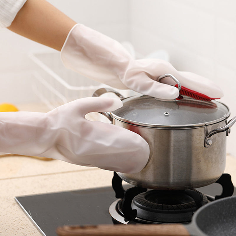 [Skånsom mot huden]:? De myke bustene på silikonhanskene gir beskyttelse til hendene dine.