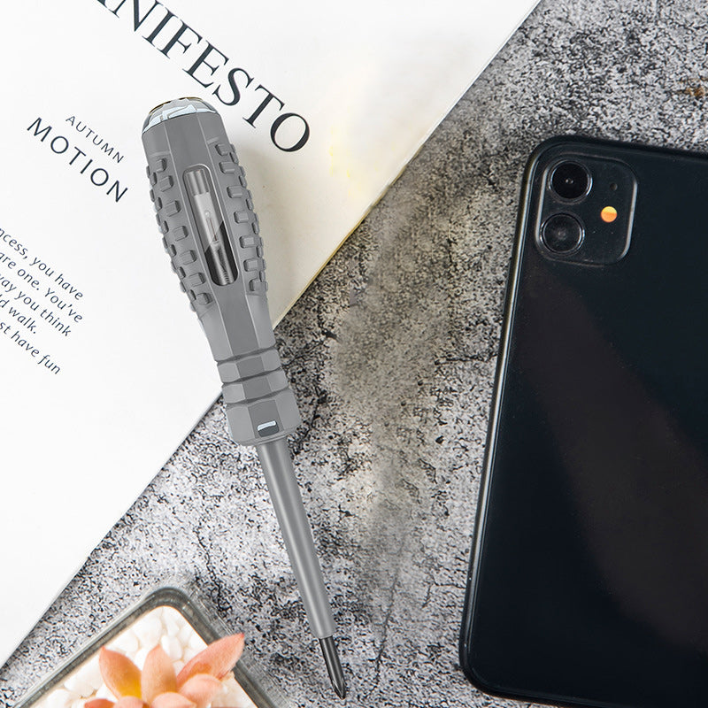 Kraftig magnet: Spissen på pennen er utstyrt med en sterk magnet, som effektivt trekker til seg skruer og små metallobjekter, og dermed øker produktiviteten.