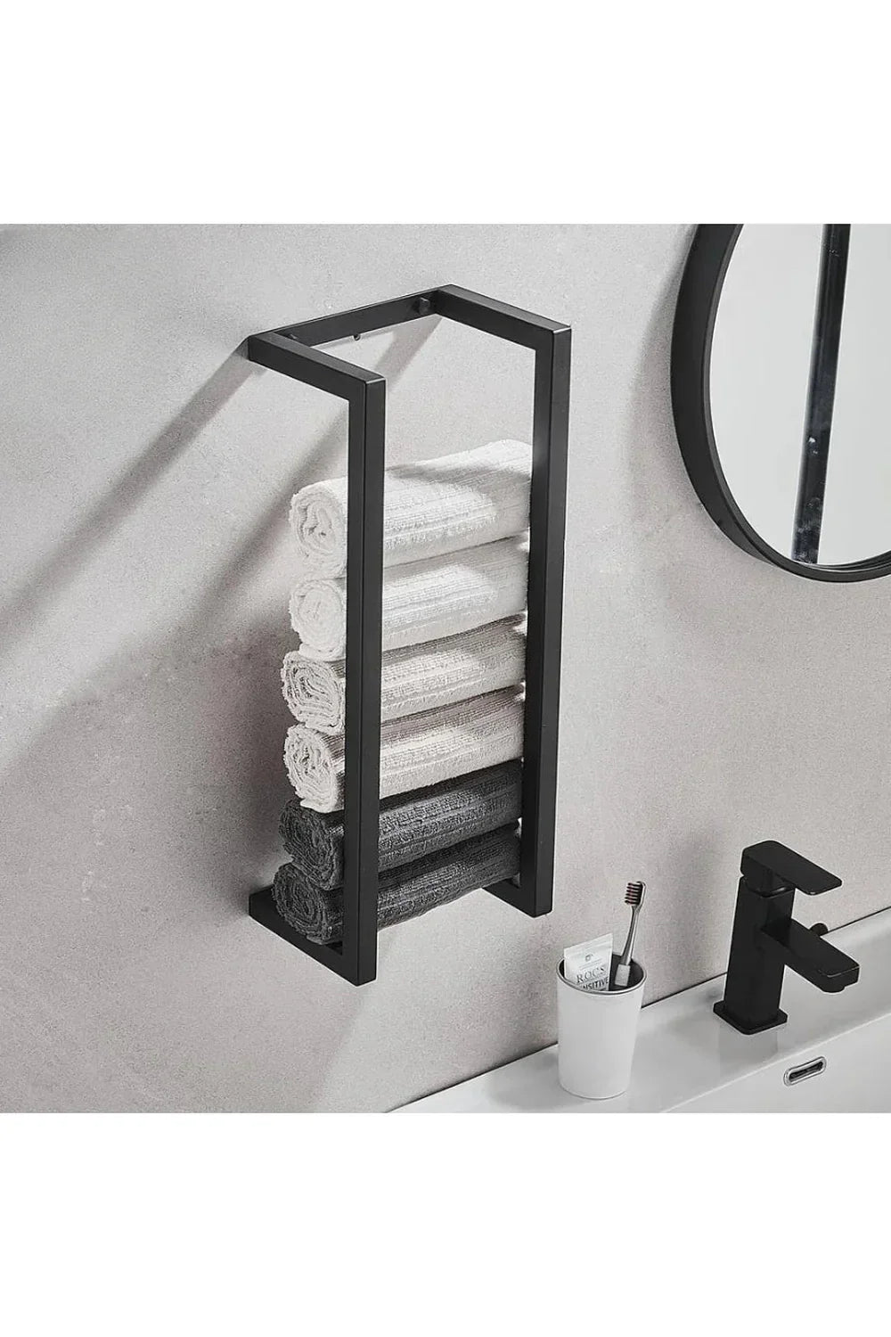 Forny badet ditt med Slimline Black Bathroom Shelf, som sømløst blander funksjonalitet med et moderne utseende. Med en høyde på 50 cm og en bredde på 20 cm, er denne stilige vertikale hyllen ideell for å oppbevare håndklær og andre nødvendigheter på en ordentlig og elegant måte. Den solide rammen i svart stål sikrer langvarig bruk og passer perfekt inn i moderne baderomsdesign. Med denne hyllen vil eiendelene dine være systematiserte og lett tilgjengelige, noe som forbedrer den overordnede orden i området ditt.