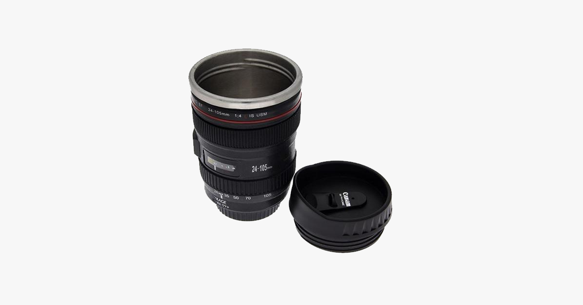 Hjemix | SLR Kamera Linse rustfritt stål reise kaffekopp med sølefri lokk