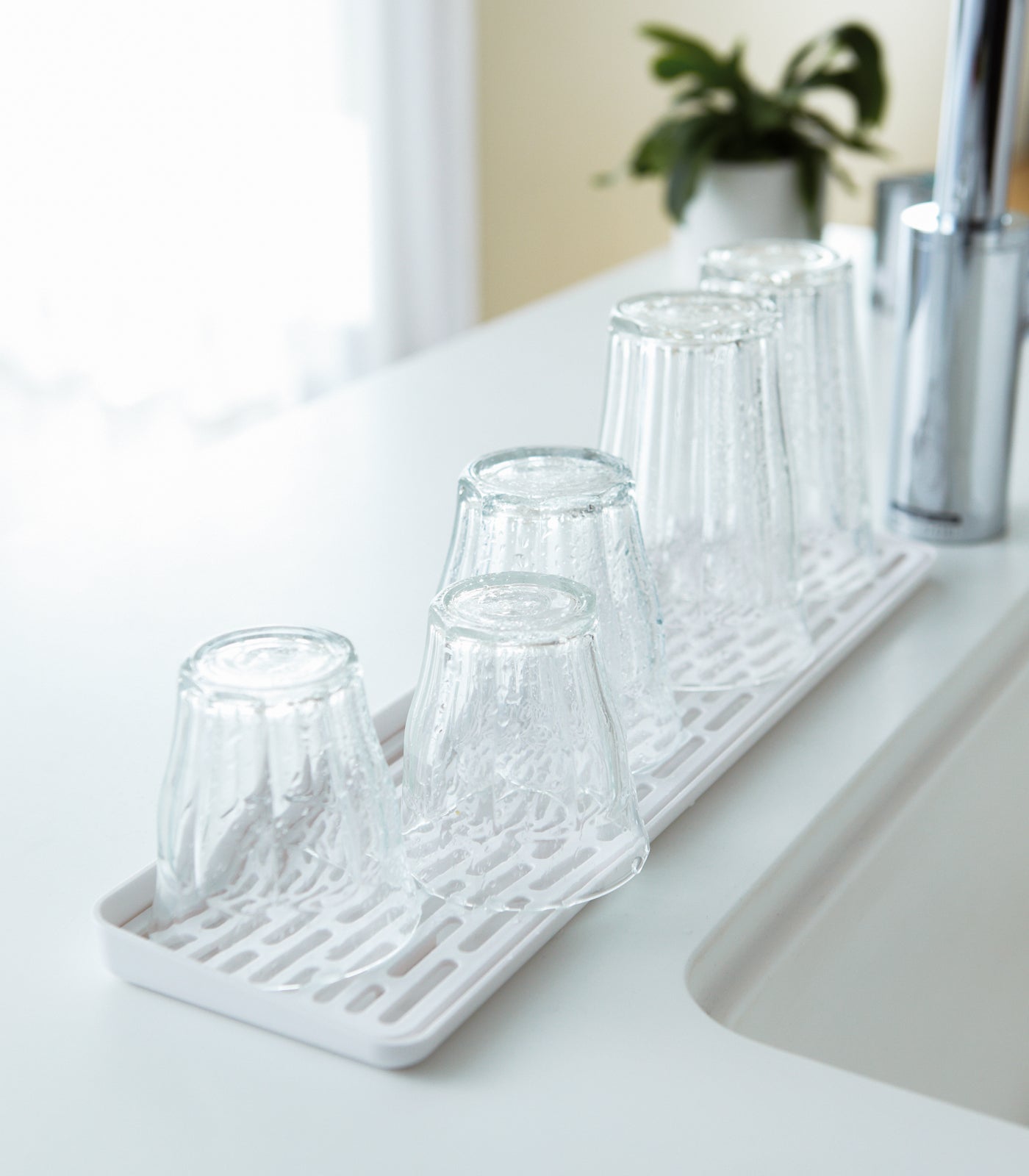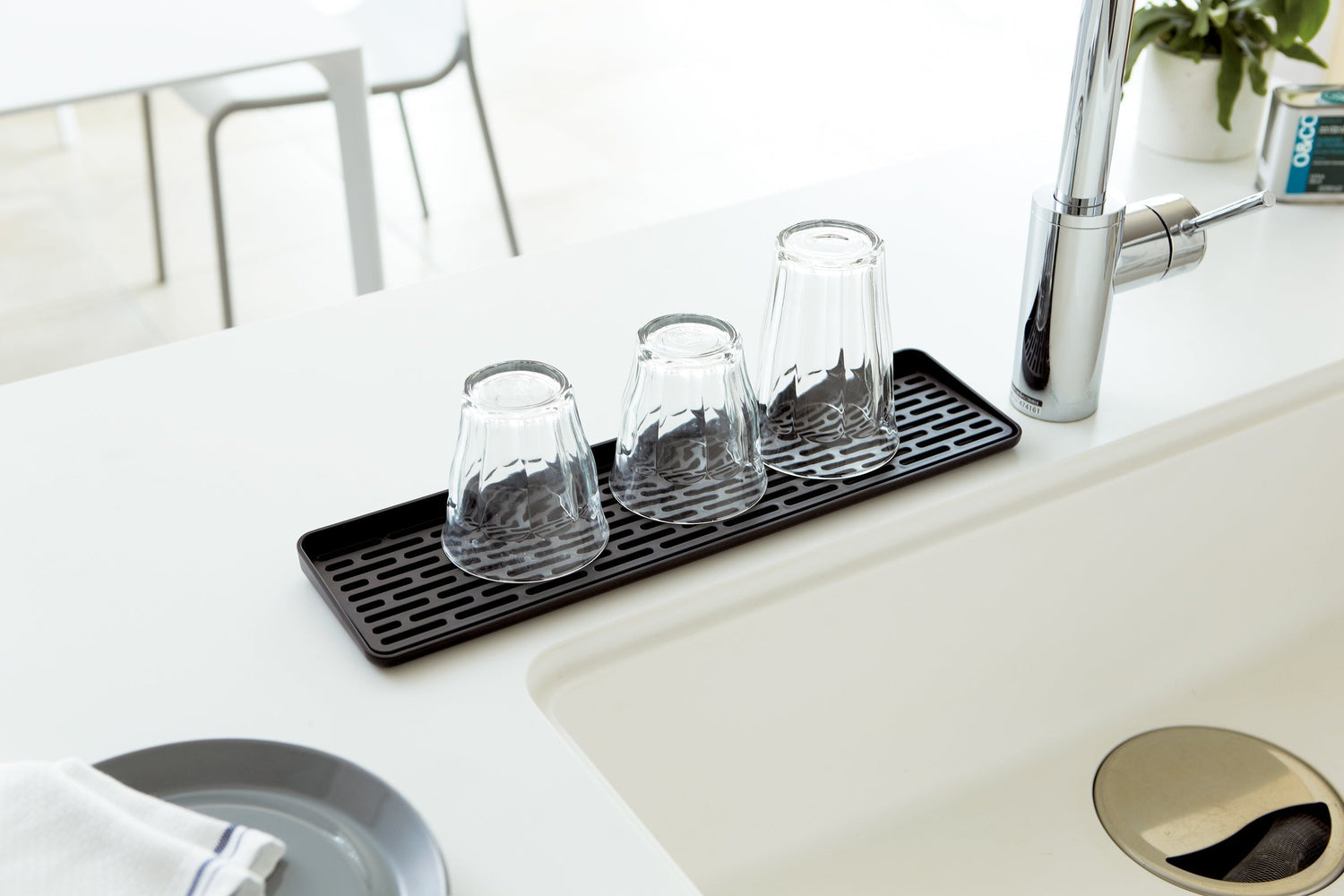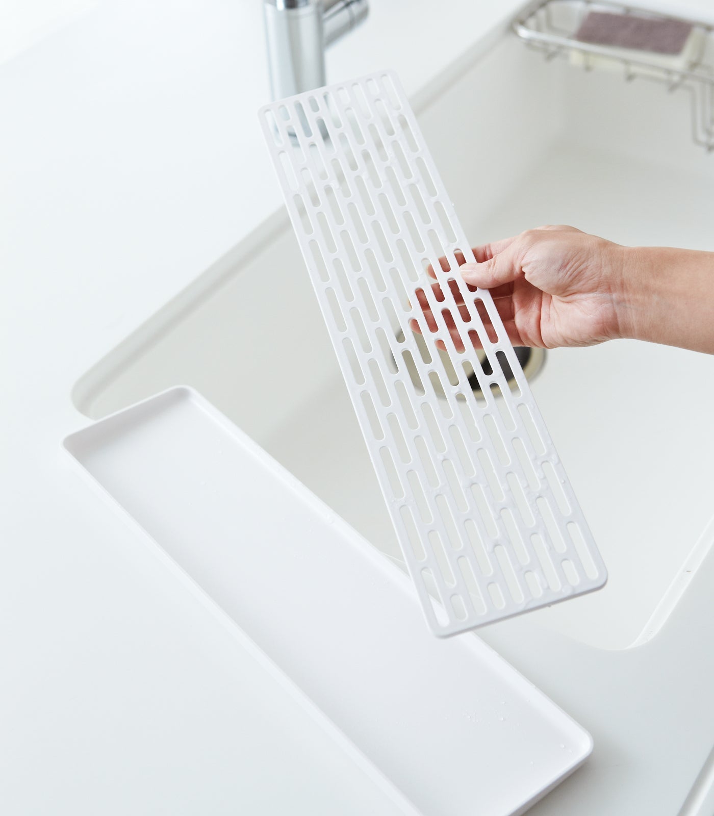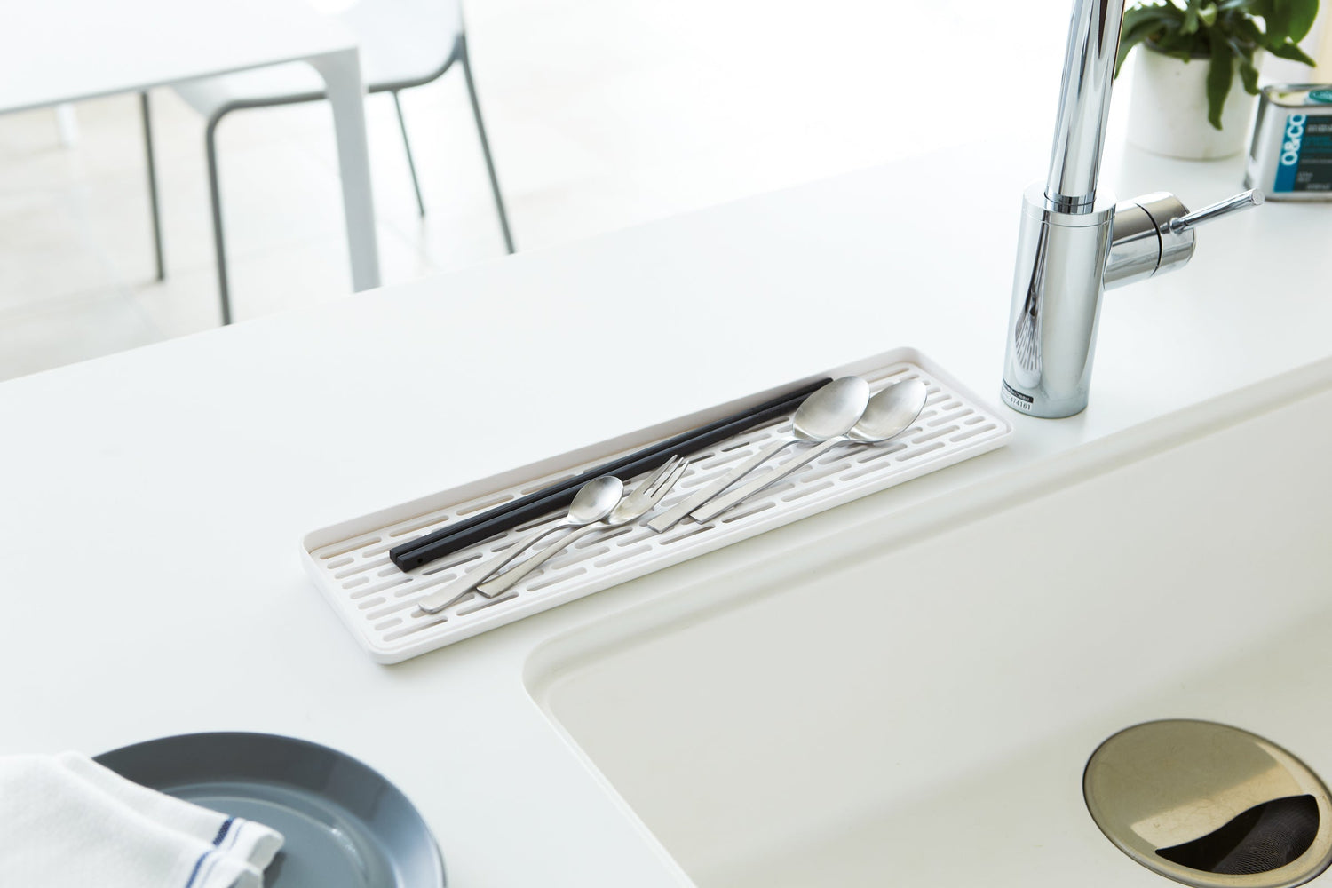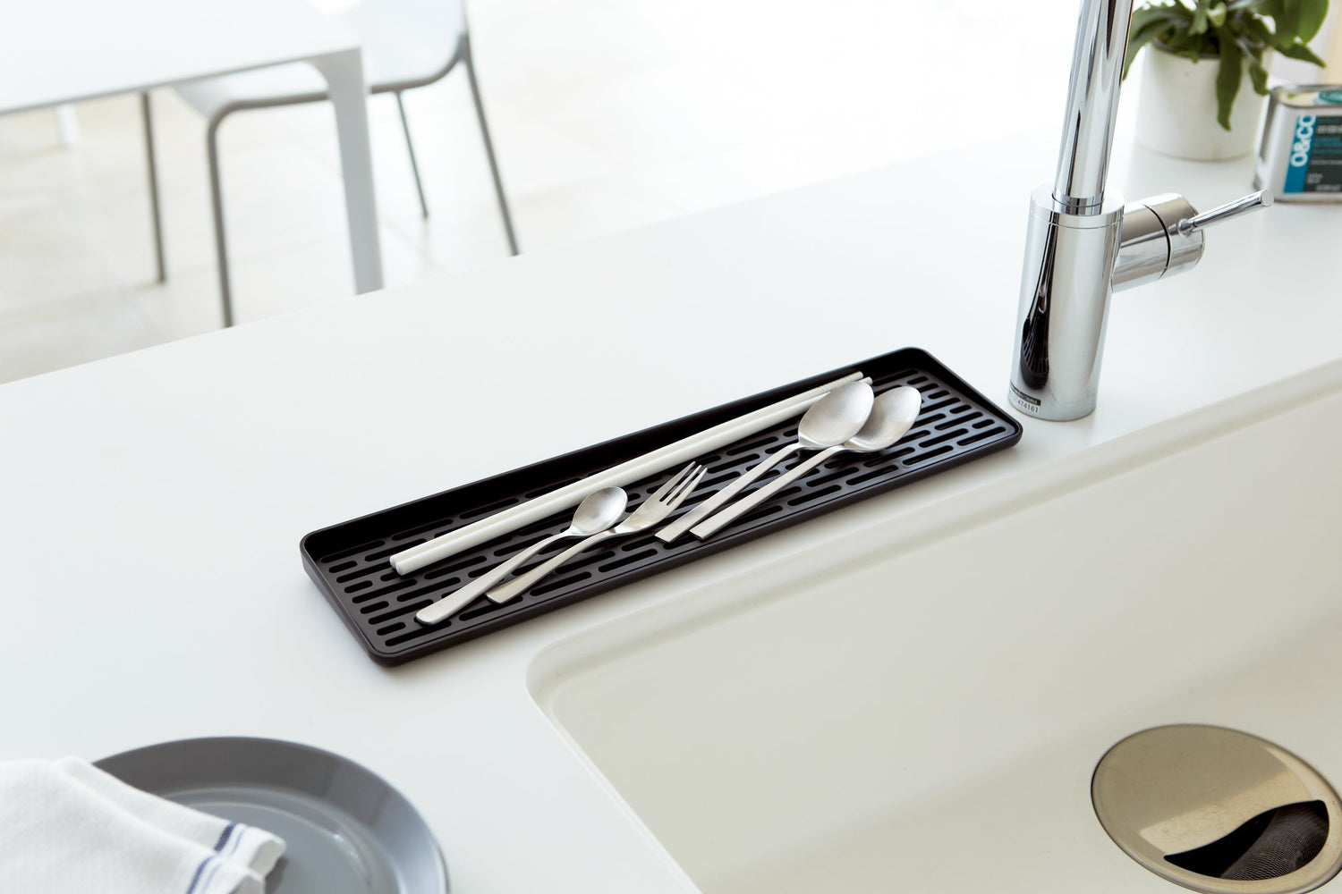 Nå finnes det en oppvaskmatte designet for å løfte oppvasken din over såpevannet, noe som gjør at du kan utnytte det tomme plassen mellom vasken og veggen. Det øverste laget av matten er forhøyet, noe som betydelig forbedrer evnen til å tørke oppvasken. Sett denne slanke matten ved siden av vasken for å få ekstra plass til å tørke tallerkener og bestikk mens du vasker, og legg den enkelt bort når den ikke er i bruk.
