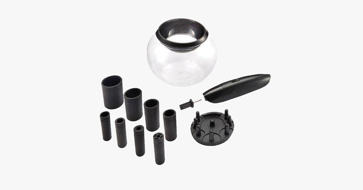 Produktet inkluderer flere krager sammen med en praktisk skål. Bare hell litt vann i skålen, fest børsten til den rette kragen, og slå på enheten. I løpet av få sekunder vil børsten din være ikke bare ren, men også helt tørket. Denne fremragende sminkebørste-renseren og tørkeren frigjør deg fra byrden av rengjøring.