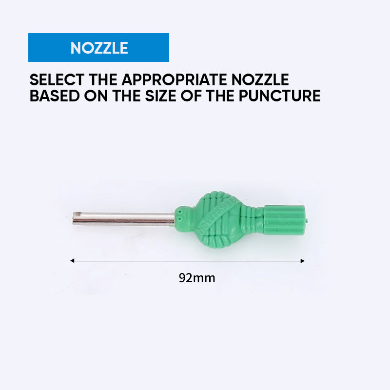 Rask og effektiv: Den automatiserte mekanismen i reparasjonspistolen krever ingen ekstra innsats eller kompliserte prosesser. Du kan reparere punkteringer uten å måtte ta av dekket, noe som sparer både tid og energi.