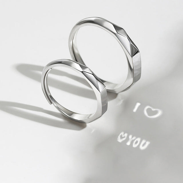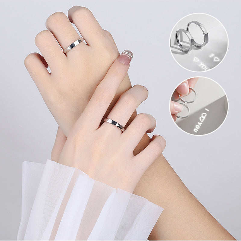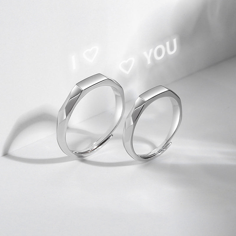 Kjærlighetsring for Par - Denne fantastiske prosjektionsringen har et design med et uendelighetsprisme som forener enkelhet med eleganse. Det som virkelig fanger blikket er hvordan denne sølvringen ser diskret ut, men viser "I ❤" eller "❤Du" når den belyses. Denne spektakulære effekten er muliggjort ved banebrytende lys- og skygge teknologi som tilfører et magisk preg til ringen.