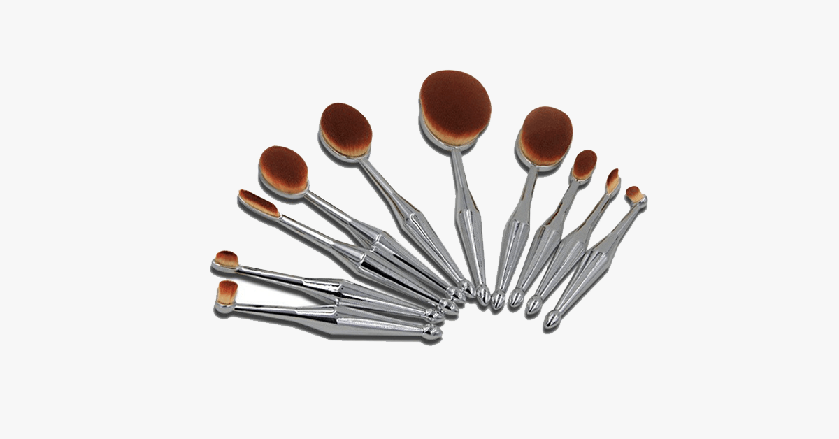 Hjemix | Stilig 10-delt oval børstesett – La den metalliske sjarmen virke sin magi på deg