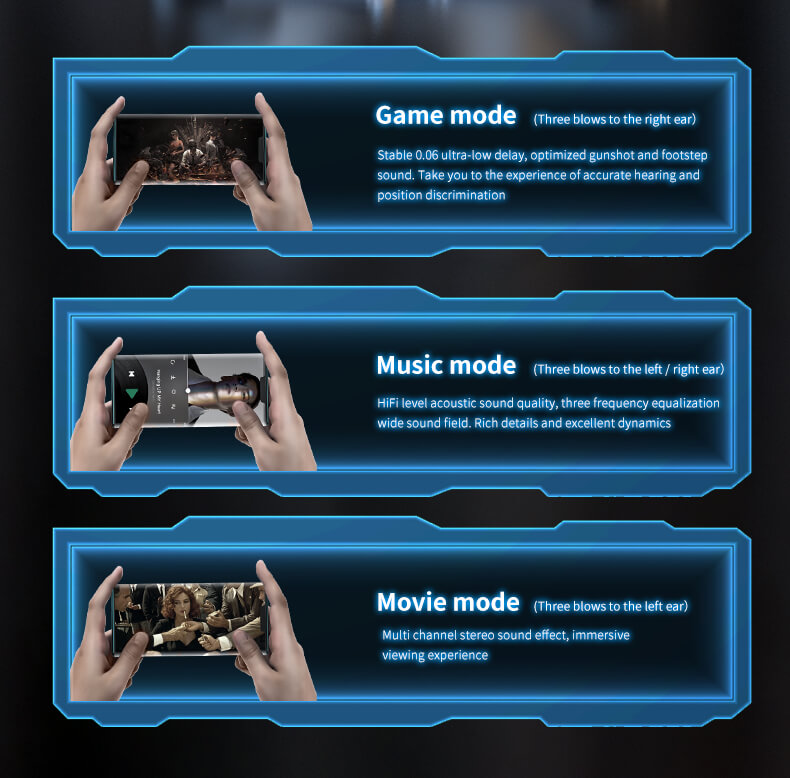 ♚【Transparent modus + Lav forsinkelse】 Slipp lyder fra omgivelsene inn så du kan kommunisere med det rundt deg. Du kan høre annonseringer på flyplassen eller i t-banen tydelig uten å måtte ta av deg hodetelefonene. Trykk fem ganger på berøringsfeltet på øreproppene for å aktivere lav forsinkelsesmodus for best mulig synkronisering av lyd og video. (Berøringer og trykk på øreproppene gir en intelligent påminnelseslyd "di")