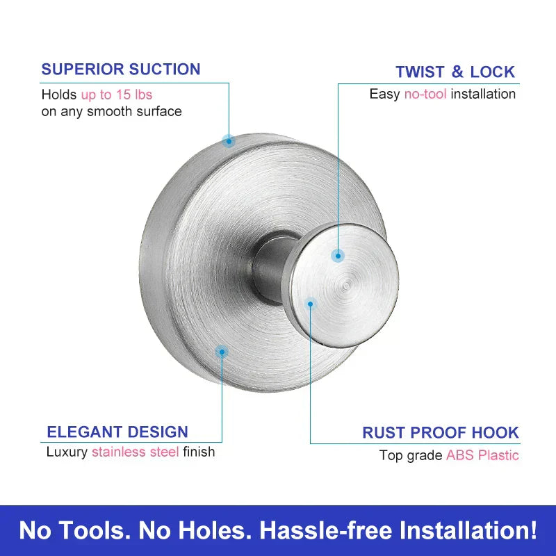 Opplev imponerende stabilitet med sugehaken. Den slitesterke sugemekanismen fester seg til glatte overflater og sørger for at utstyret ditt forblir på plass. Den er optimal for fliser, glass og speil – selv ved daglig bruk vil den forbli stabil. Stol på en hake som alltid møter dine behov.