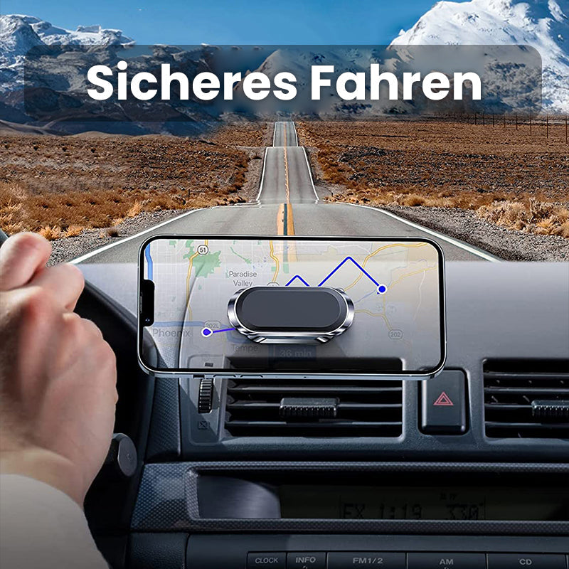 Fleksibel bruk: Det magnetiske designet lar deg plassere smarttelefonen både horisontalt og vertikalt, noe som forbedrer navigeringen med en holder som kan tiltes og roteres 360 grader.