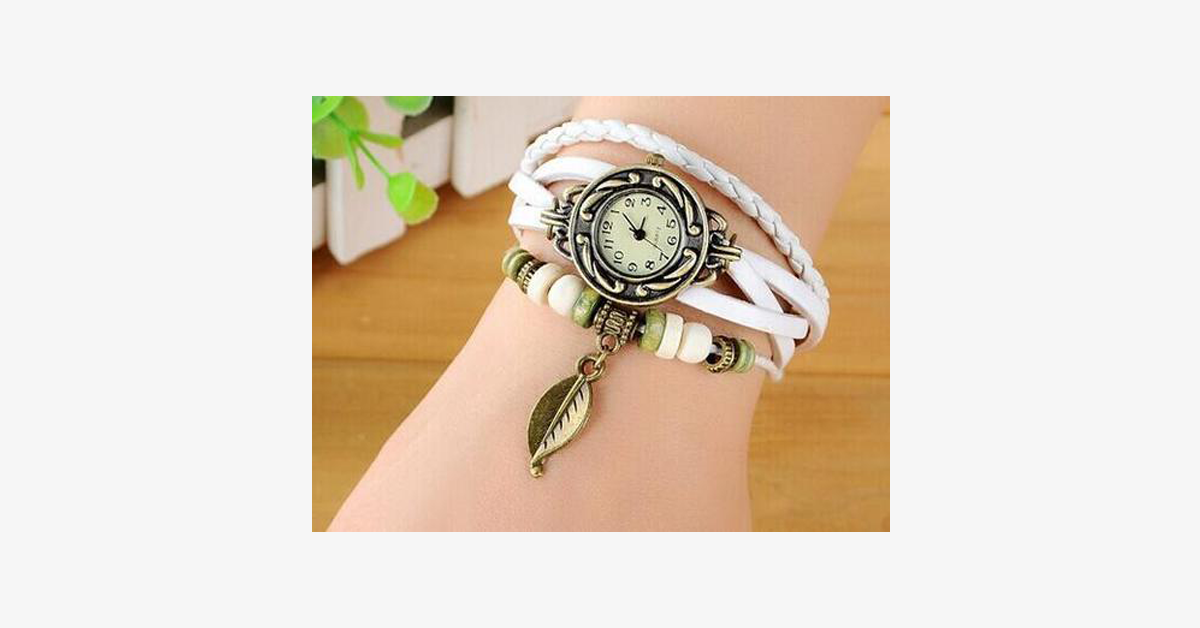 Et håndlaget bohemsk design er ideelt for alle typer antrekk, enten du skal på en romantisk middag eller en jobbpresentasjon, og det er passende for enhver anledning. Blad vintageklokken tilbys i syv forskjellige farger: brun, grønn, oransje, rød, blå, hvit og svart. Velg din favorittfarge fra vårt nydelige fargeutvalg.