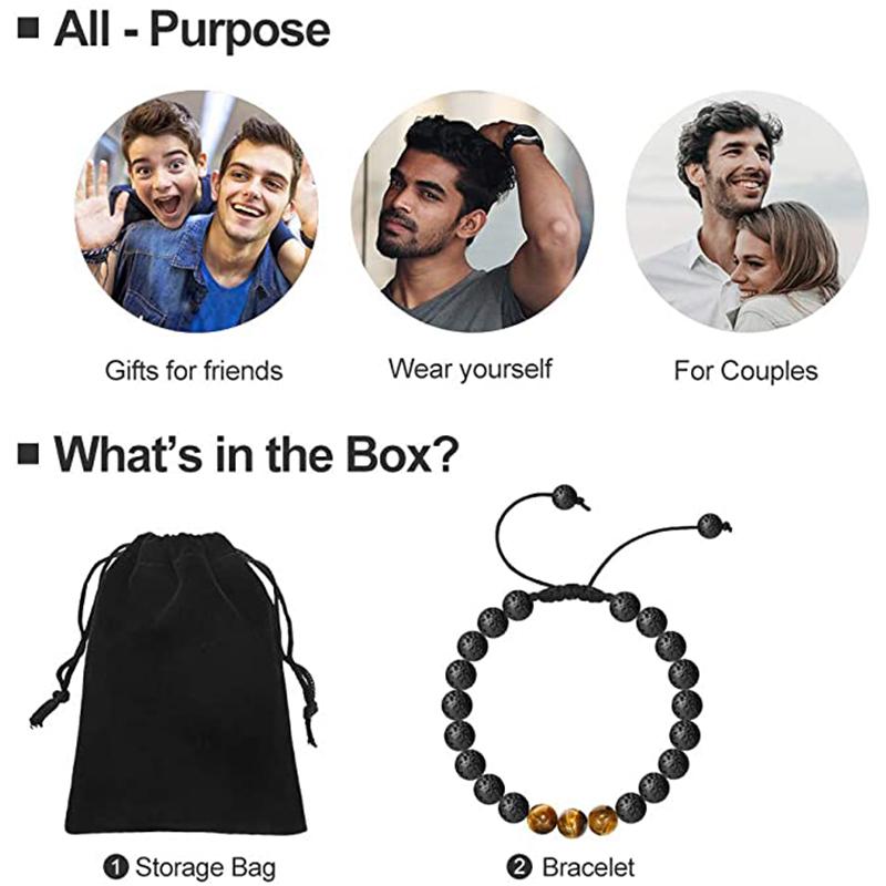 MATERIALE: Bestående av naturlig svart lavastein og tigerøye, kommer det med en praktisk flanellpose for gave. De naturlige steinperlene er lette med lav tetthet, og deres kjølige følelse kan bidra til å redusere angst.