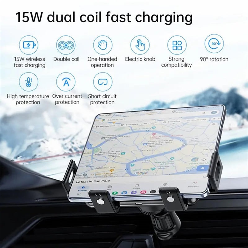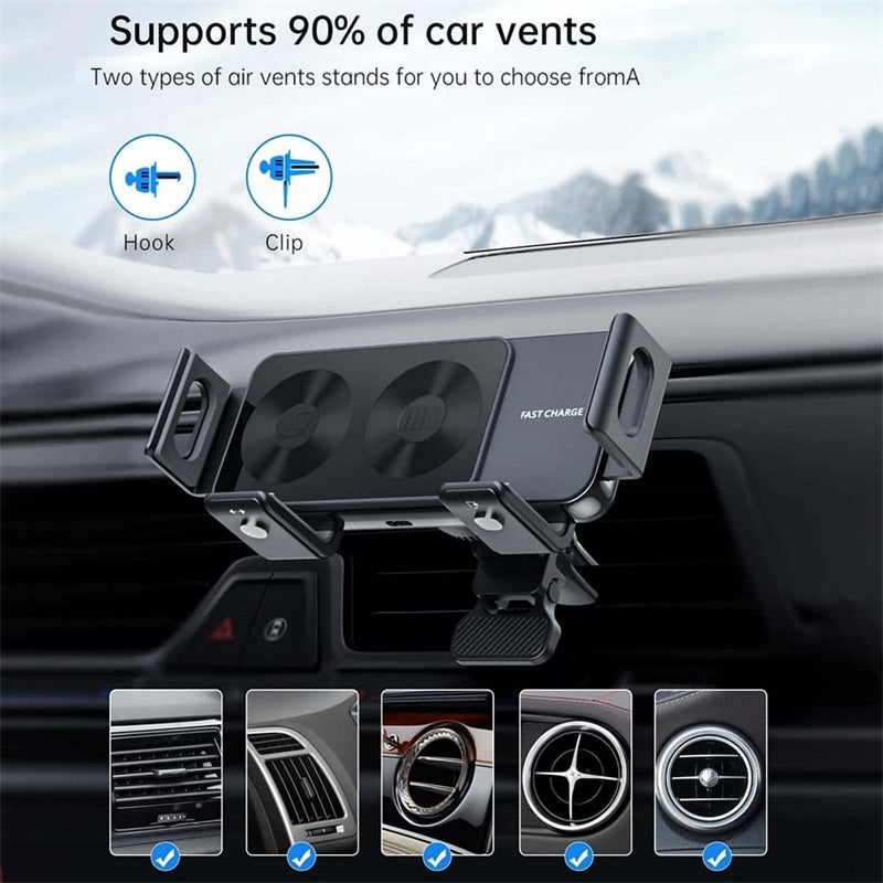 Hjemix | Trådløs bilopplader med to spoler til telefonmontering