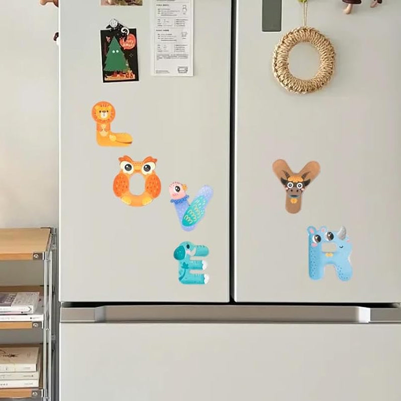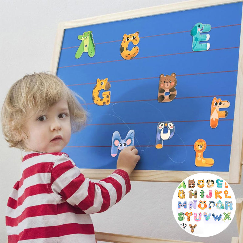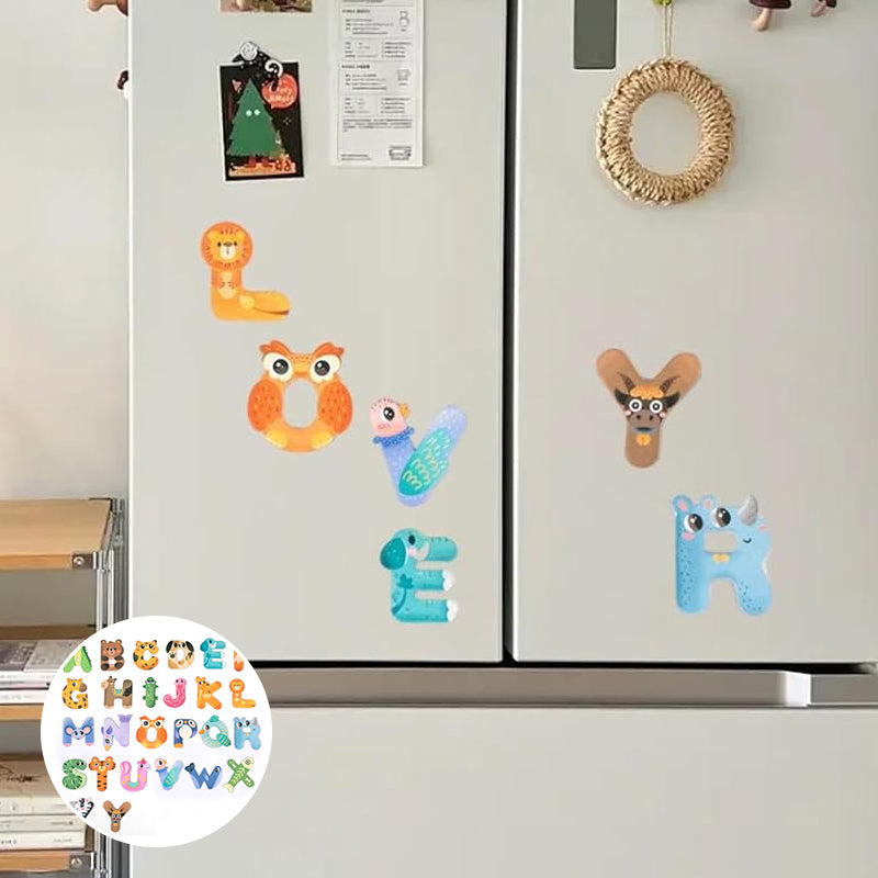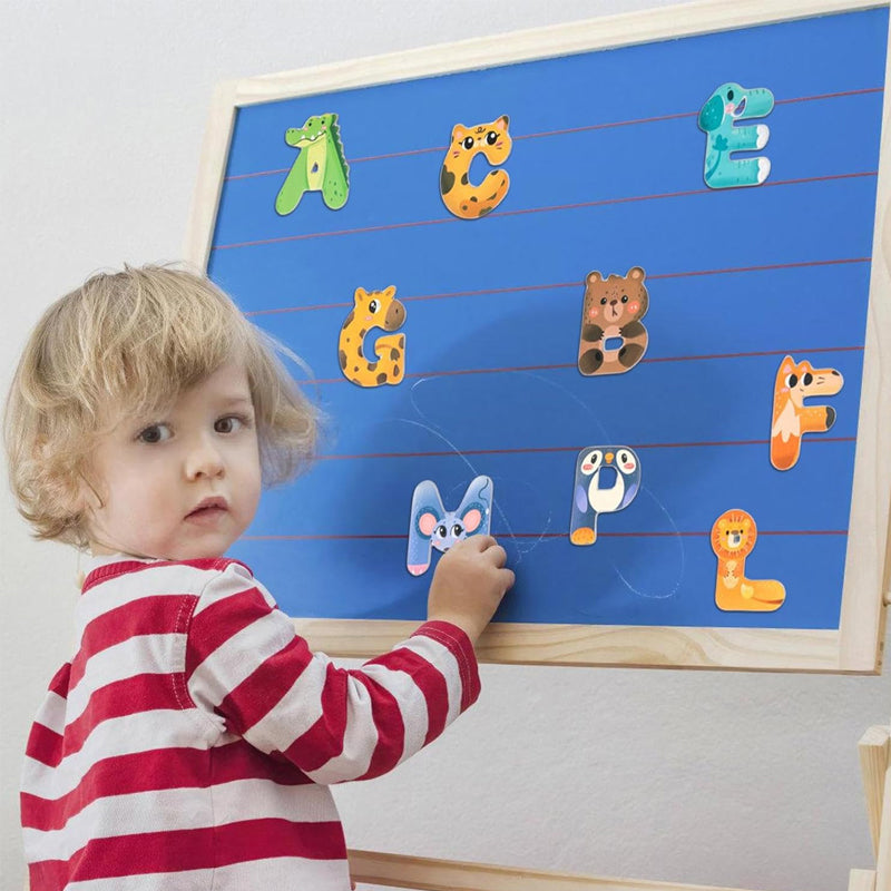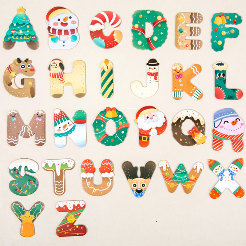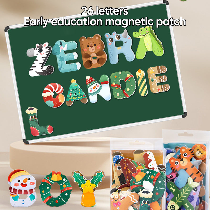 Morsom og pedagogisk: Dette settet inneholder 26 trebrevmerker illustrert med søte dyremotiver og sesongbaserte temaer, noe som gjør det til en spennende måte for barn å lære alfabetet på.