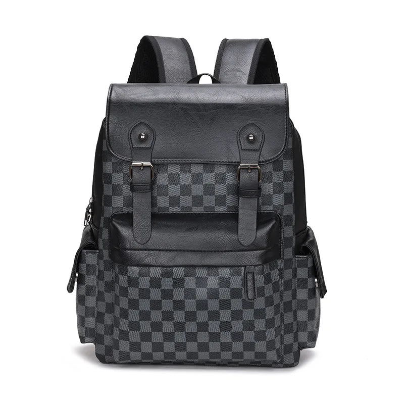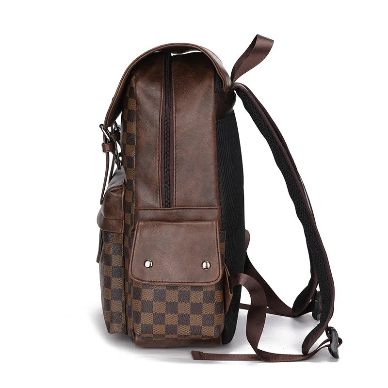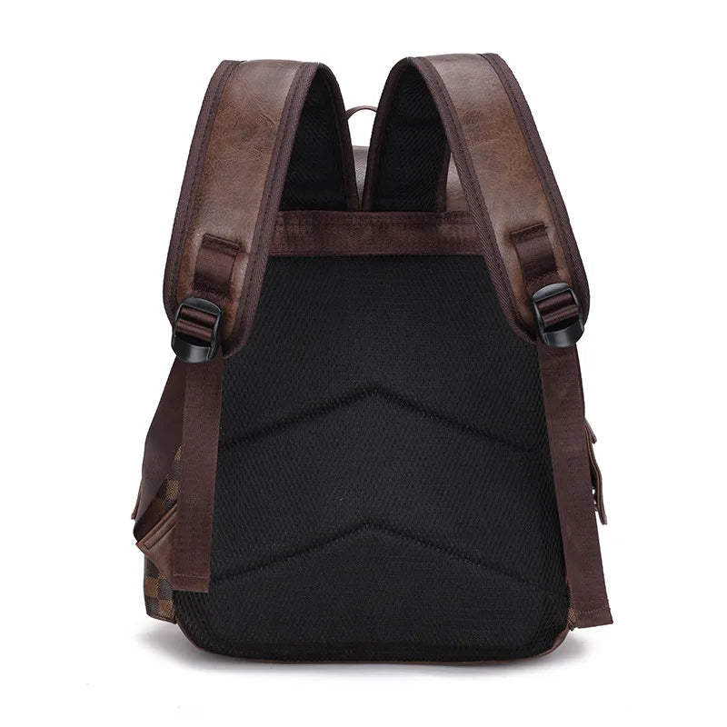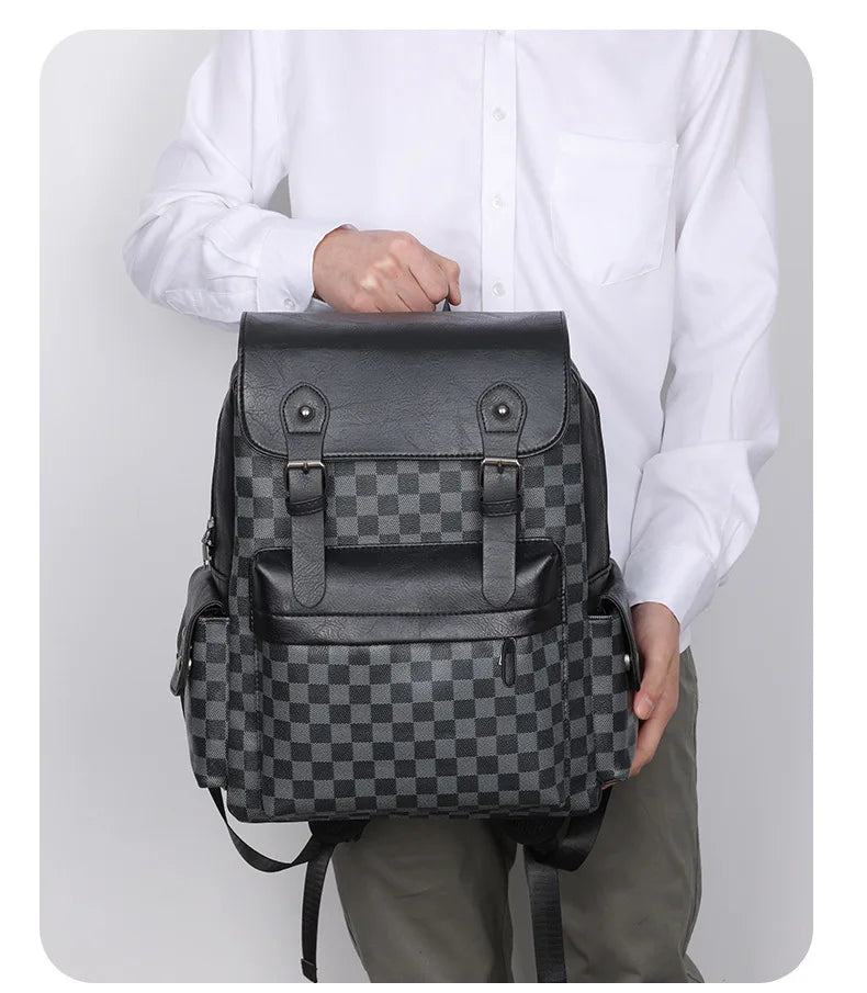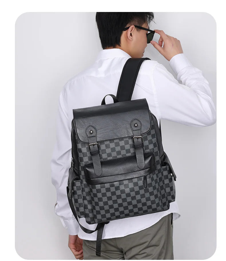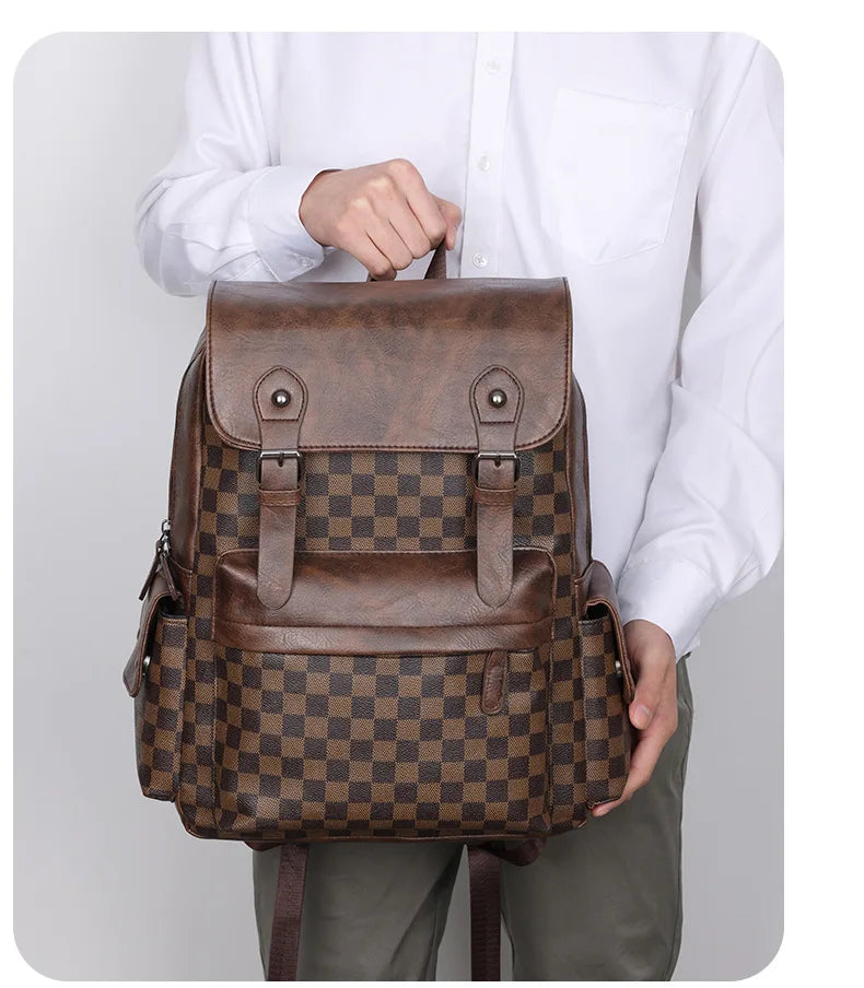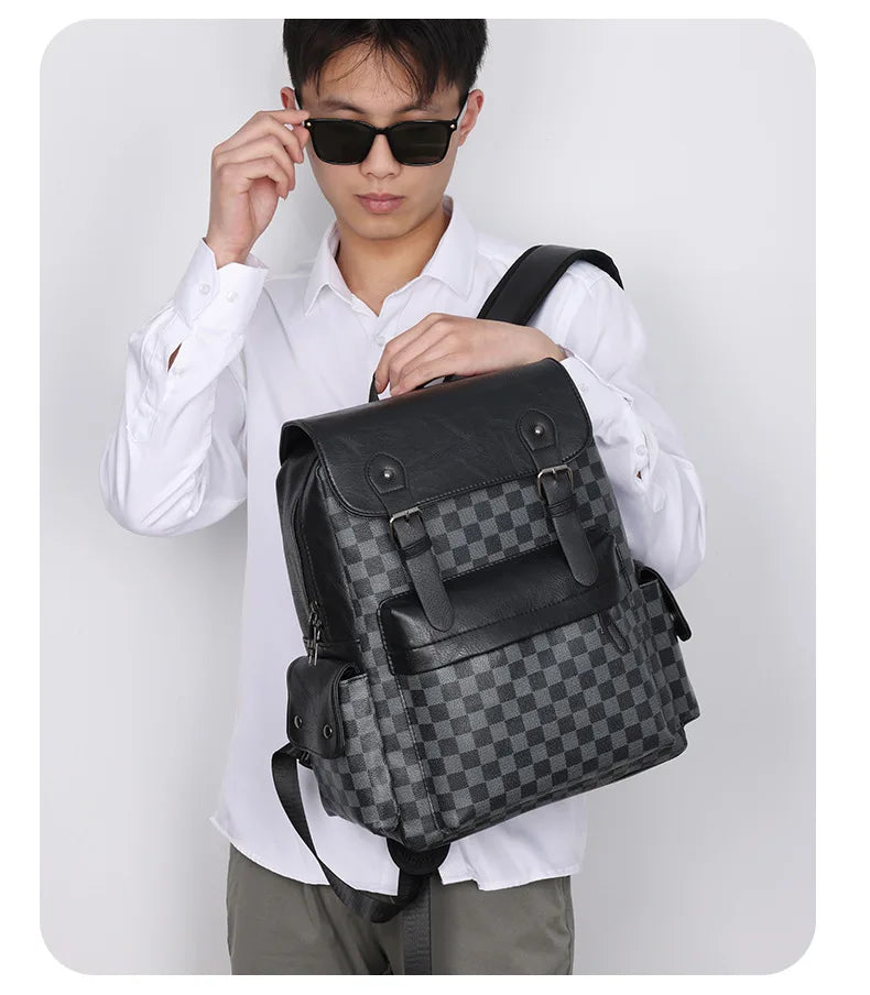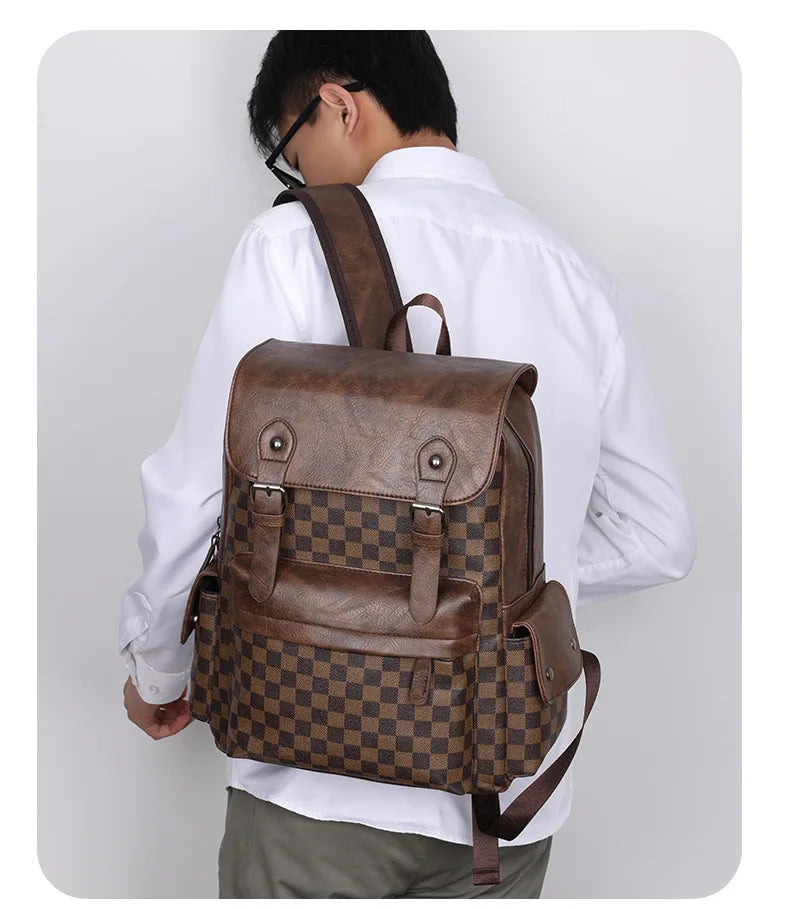 Hjemix | Trendy Rute Business Allsidig Herre Ryggsekk Reise Stor Kapasitet Luksus Merke Design Ryggsekk Menn PU Lær Skole Ryggsekk