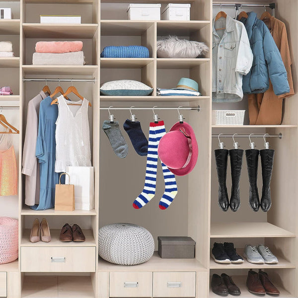 【ALLSIDIGE KLEMMER】 Disse buksehengere er utmerkede for daglig bruk på soverommet, vaskerommet, kjøkkenet og mer, og de er også perfekte for reise, forretningsreiser, hoteller, bobiler, camping eller kontorbruk hjemme. I tillegg til å fungere som hengere for leggings, er våre multifunksjonelle hengere ideelle for bukser, jeans, skjørt, yogabukser og dressbukser, blant annet. Som hengere kan de også brukes til høye støvler, capser, sokker, håndklær, vesker, snacks osv.