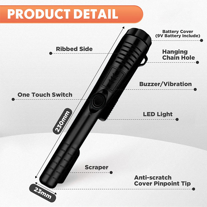 【Høy Følsomhet med 360° Dekning】 Denne metalldetektoren lar deg grundig skanne store områder horisontalt, etterfulgt av presise målinformasjoner for å lokalisere gjenstanden nøyaktig før du begynner å grave. Den bar-probe-designen gjør det enklere å oppdage på dypere nivåer i hull effektivt.