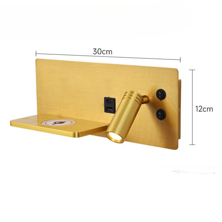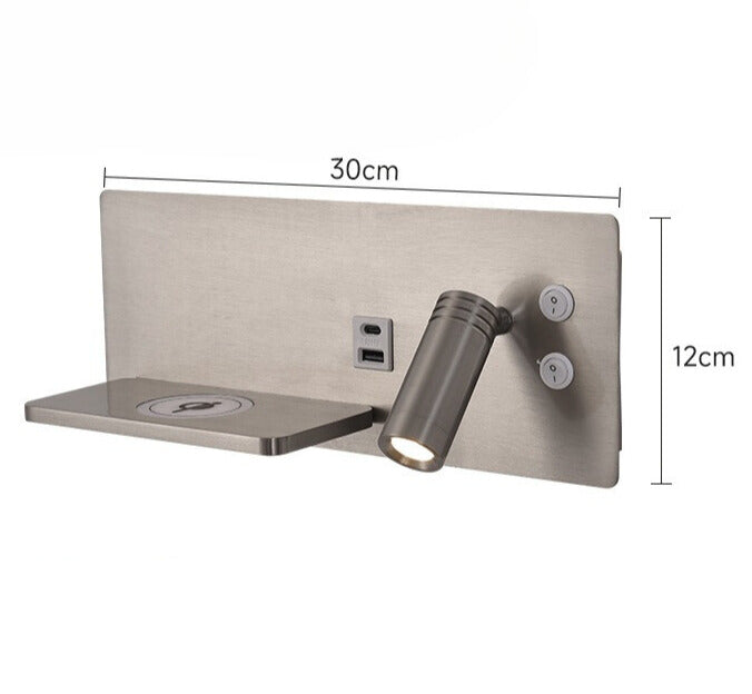 Moderne LED Vegglampe med USB-port & Hylle – Ideell for Soverom & Kontor | Vippbar Vegglampe med Trådløs Lading