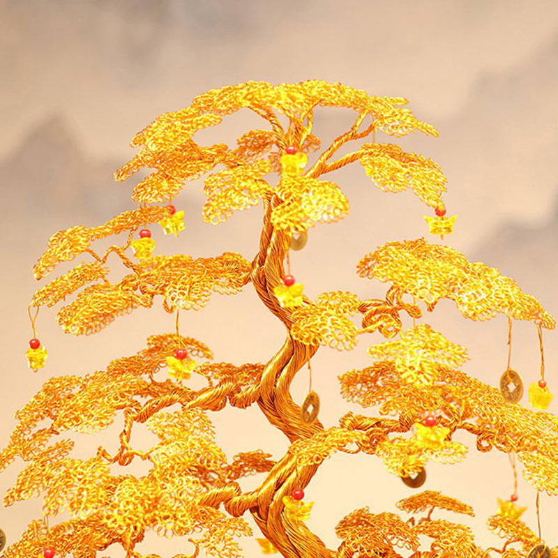 SYMBOL PÅ VELSTAND OG LYKKE - Rising Prosperity Fortune Tree Creative Ornament er mer enn bare et dekorativt stykke; det er et symbol på velstand og lykke. Dets elegante design og gullfarge fremkaller en følelse av rikdom og suksess, noe som gjør det til et ideelt tillegg til dekorasjonen din for å tiltrekke positiv energi og overflod inn i livet ditt.