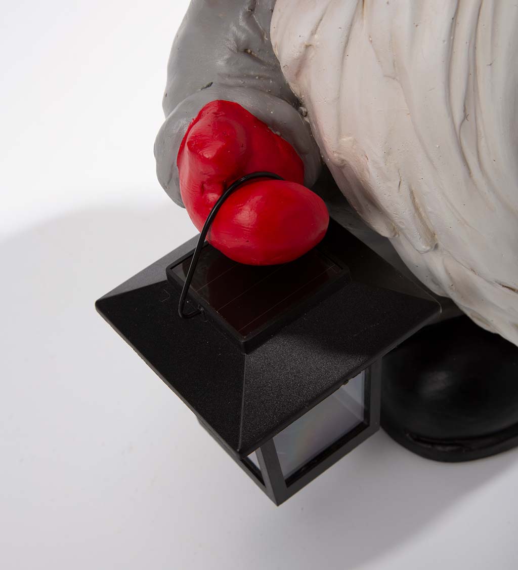 For å hjelpe deg langs veien, holder han en solcelledrevet lantern som gir et innbydende lys på din vei. Laget av værbestandig harpiks for innendørs eller utendørs bruk, vil denne muntre karen bli en ny favorittdel av julesmykkene dine. En unik og omtänksom gave.
