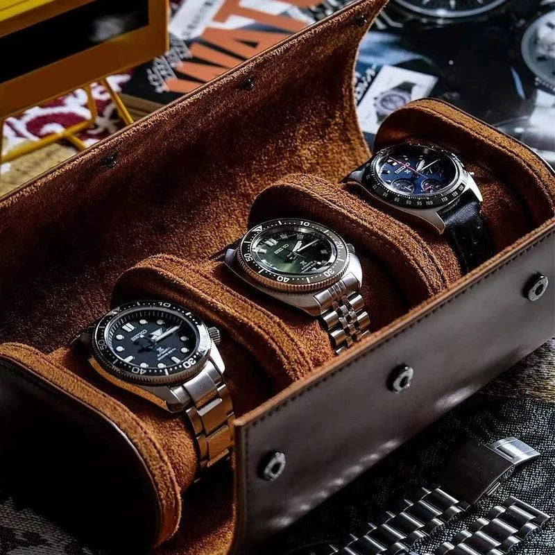 Hjemix | Vintage lær 3-slot herre klokke boks for reise