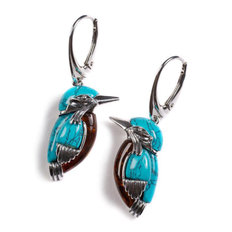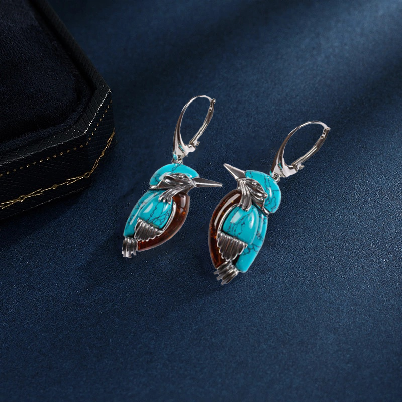 Emballasje: 1 par Vintage Turkis Fugl Øredobber