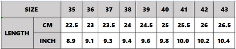 - Vennligst velg produktet i henhold til vår størrelsestabell før du kjøper. For brede eller kraftige føtter anbefaler vi å velge en størrelse større.