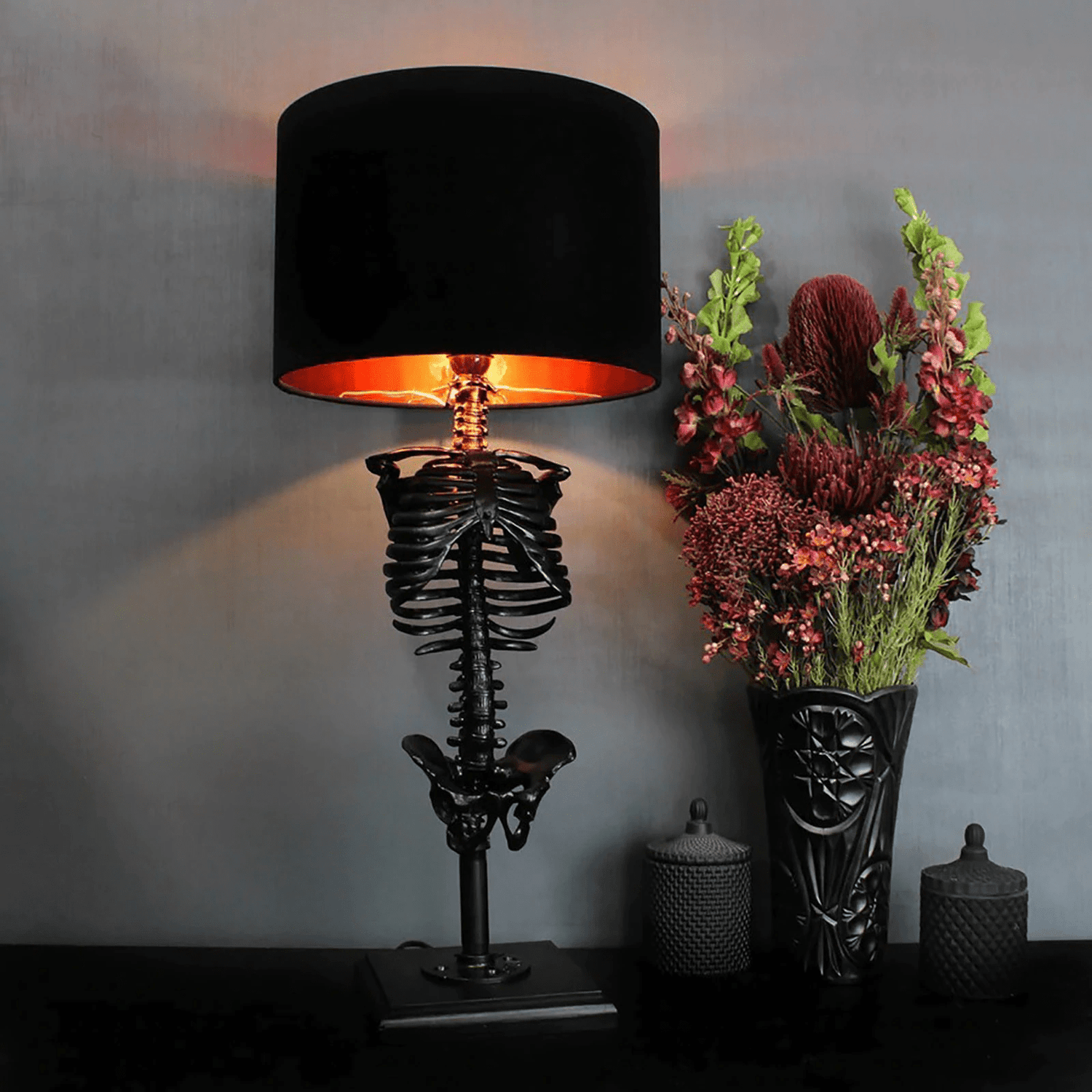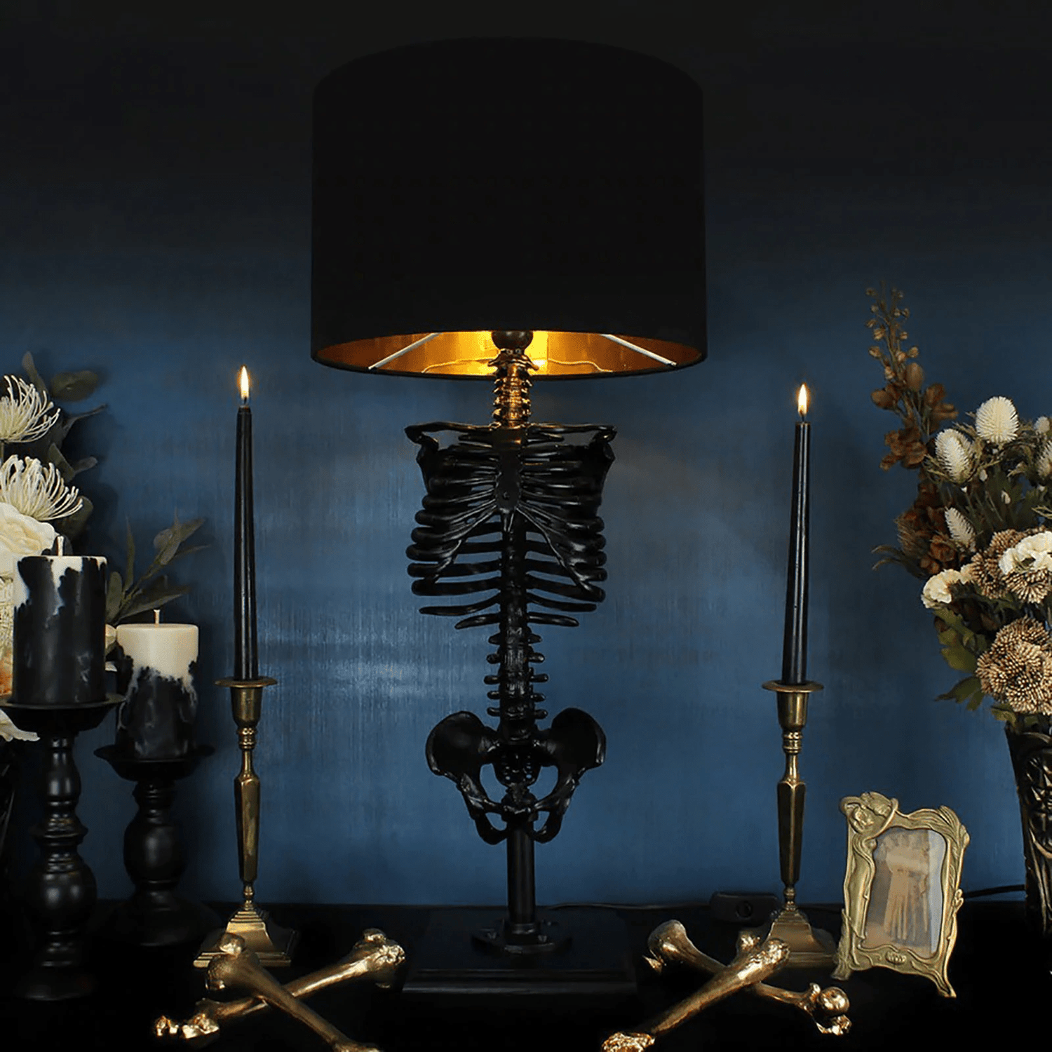 SkeleLamp er et unikt og stilfullt element for ditt kunstneriske, gotiske hjem. Denne imponerende, håndlagde lampen er ideell for de som elsker det mystiske og skumle.