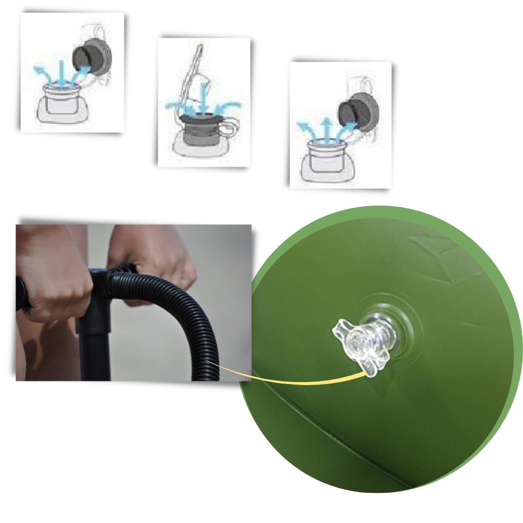 Du tenker kanskje, "denne tanksen ser ganske stor ut, så hvor lett er den å blåse opp og bruke?" Svaret er: veldig, enkelt! Tansken er enkel å blåse opp, og du kan velge å bruke enten en hårføner, en elektrisk pumpe eller en håndpumpe. Oppblåsingsprosessen er rask, og når du er ferdig med å bruke den, vil du også enkelt kunne tømme den. For å blåse den opp, følg ganske enkelt trinnene nedenfor: