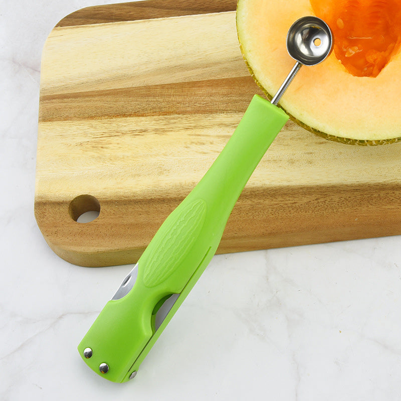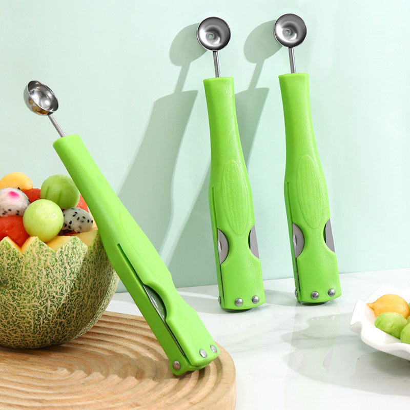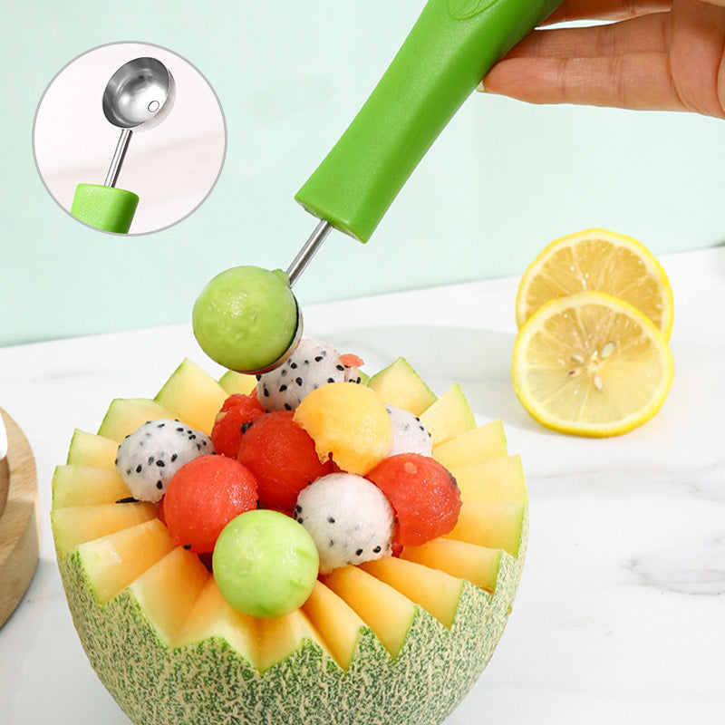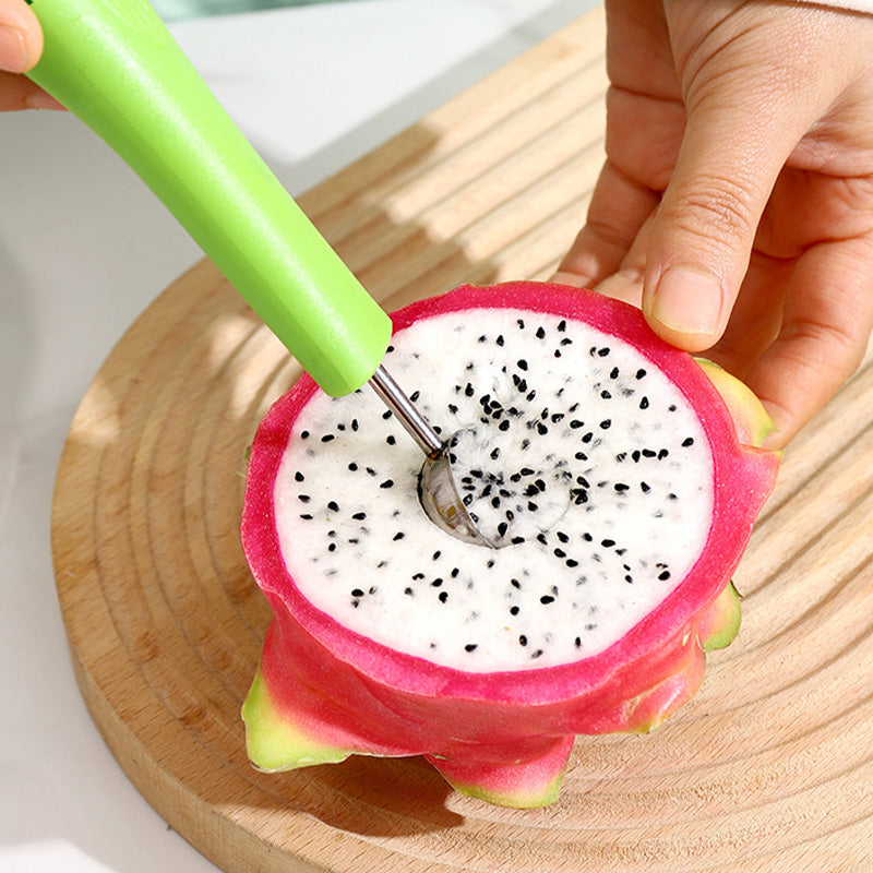 - Brukervennlig - Vår nye fruktskjærer har en spesiell, buet skjeform som gjør det enkelt og sikkert å ta ut fruktkjøttet fra runde frukter. Laget i miljøvennlig rustfritt stål, gir den en trygg og morsom opplevelse for fruktforberedelser!
