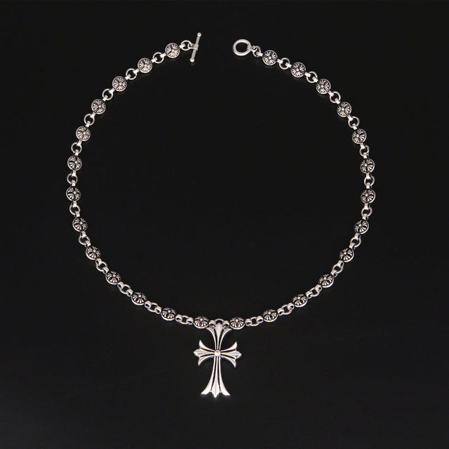 Velg din ønskede kædelengde og vedhengstørrelse for å skape et iøynefallende, gotisk utseende med denne intrikate korshalskeden, perfekt for enhver anledning.
