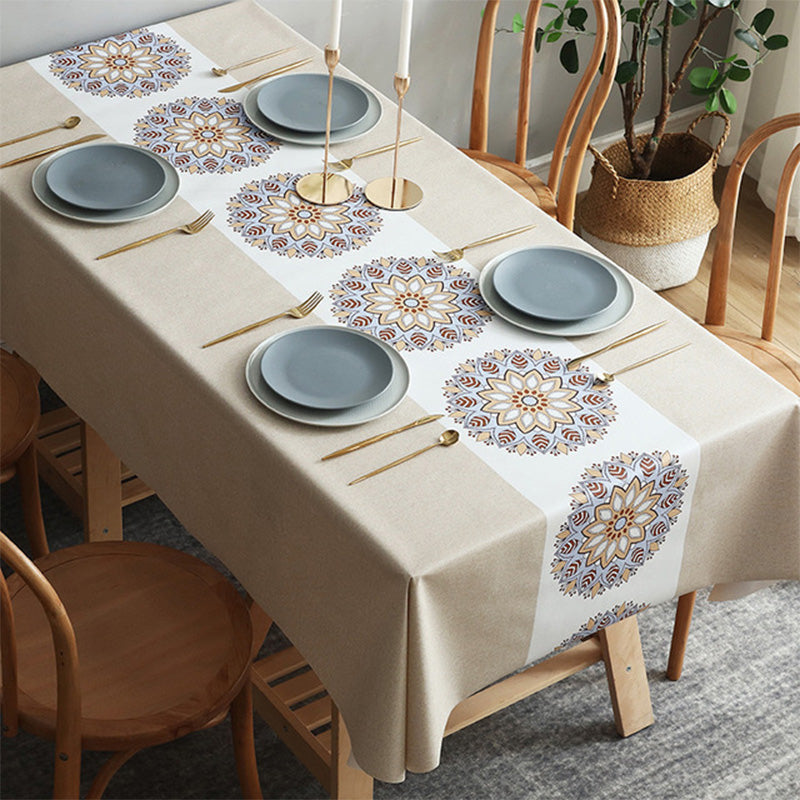Duken, som er rynkebestandig, rektangulær bordduk, kan lett rengjøres med en fuktig klut, svamp eller serviett. MERK: Unngå stryking, bleking, maskinvask eller tørketrommel.