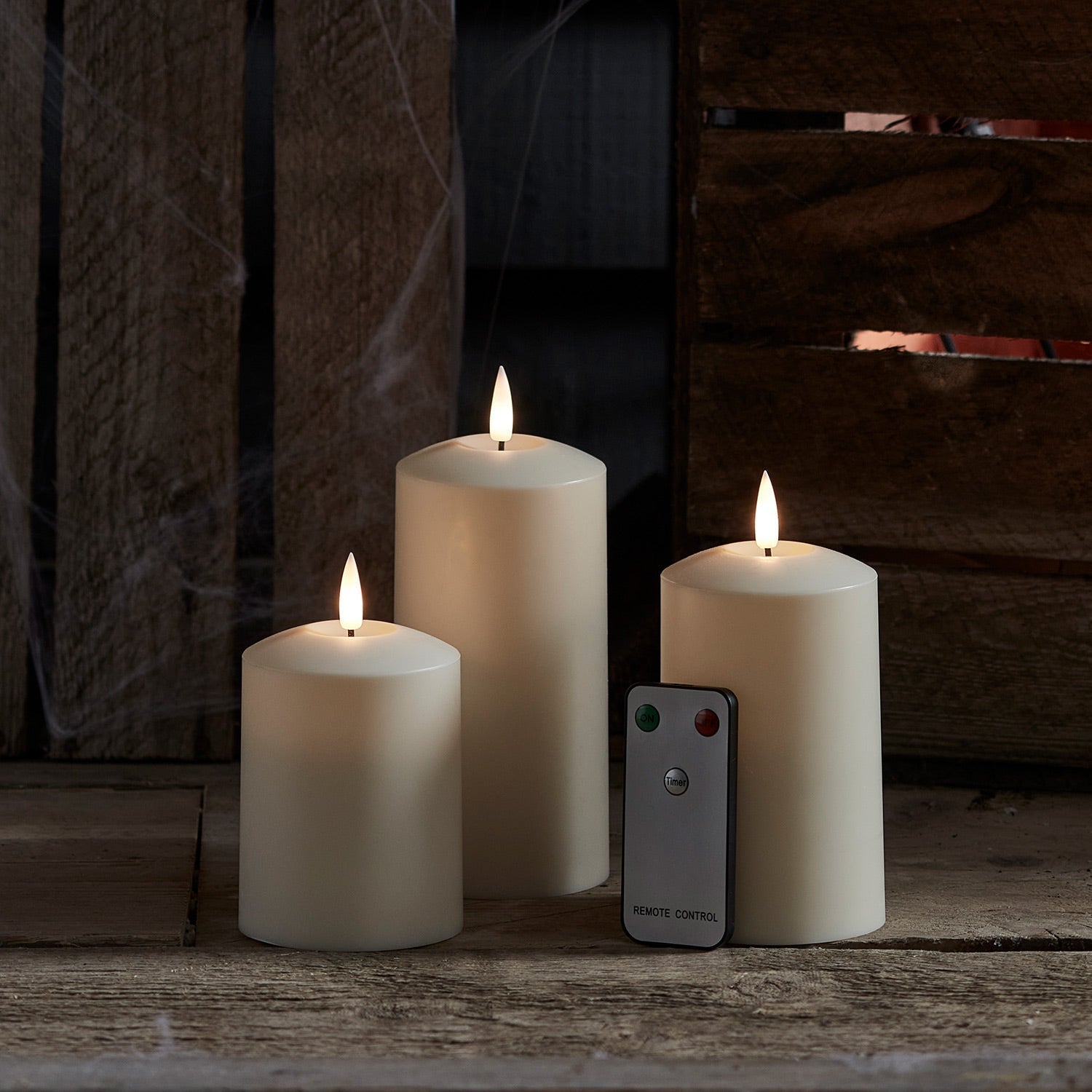 Hjemix | TruGlow LED Utendørs Stearinlys Trio med Fjernkontroll